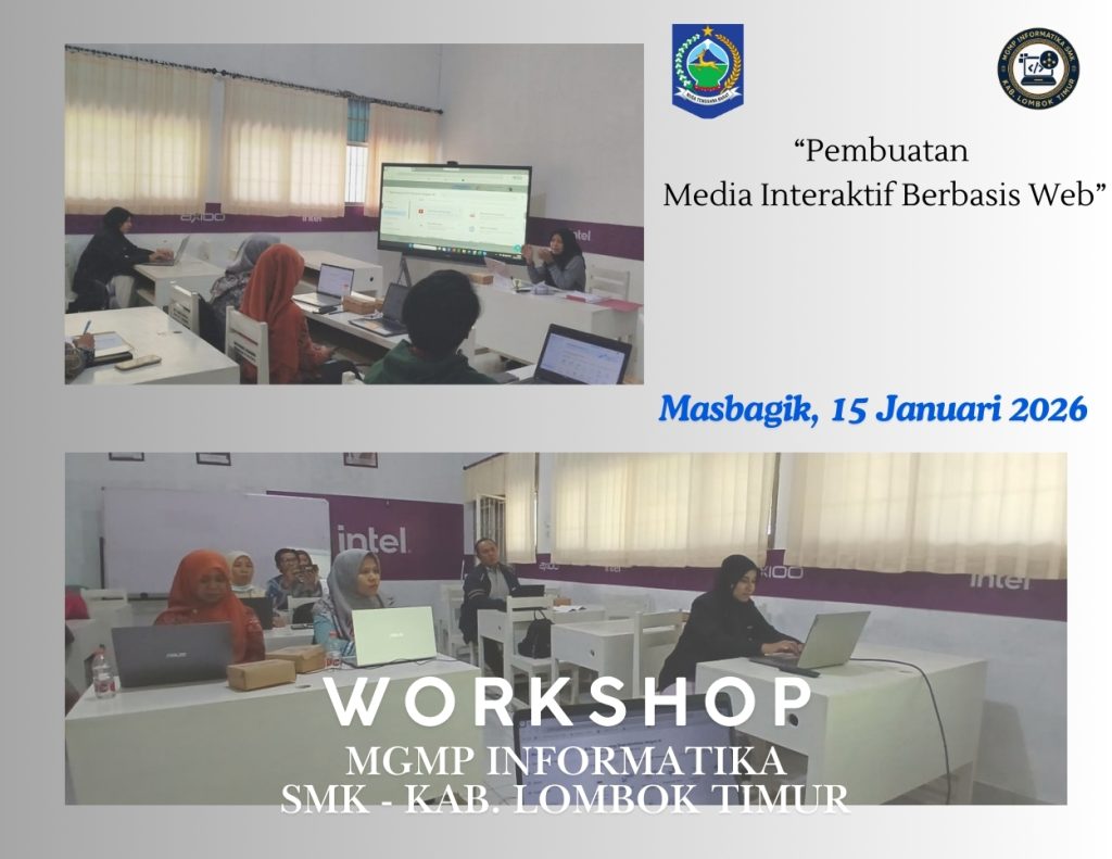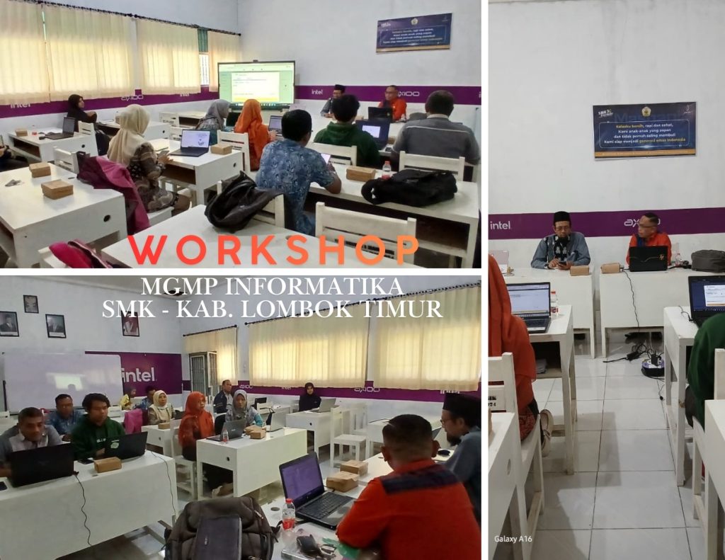 Guru-guru yang tergabung dalam Forum MGMP Informatika SMK Kabupaten Lombok Timur melaksanakan kegiatan workshop pada hari ini di Ruang Axioo SMKN 1 Masbagik. Kegiatan ini bertujuan untuk meningkatkan kompetensi guru dalam pemanfaatan teknologi digital guna mendukung proses pembelajaran yang lebih inovatif dan interaktif.
