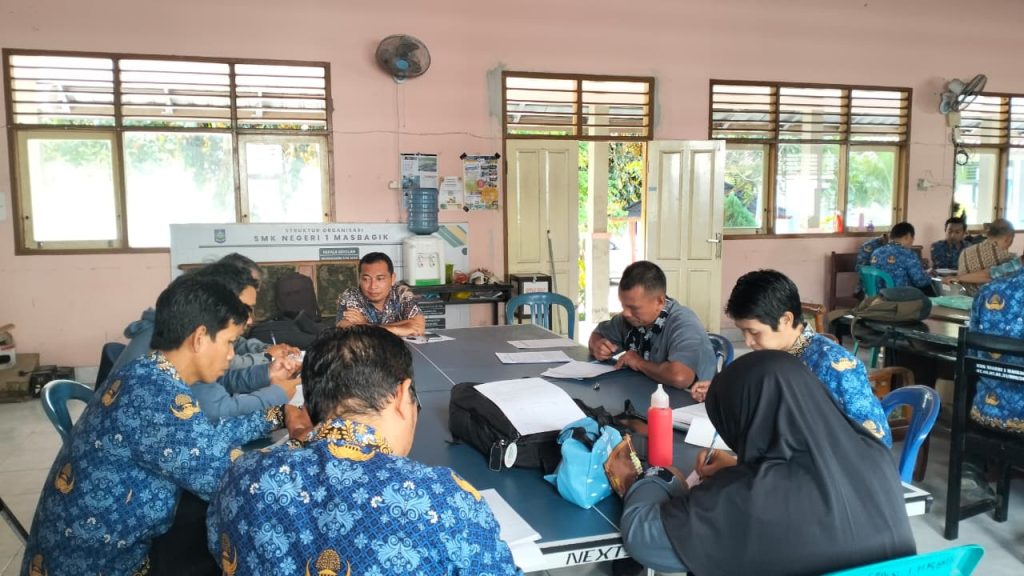 Supervisi akademik bagi Bapak/Ibu guru SMKN 1 Masbagik pagi ini dilaksanakan oleh Bapak/Ibu Pengawas SMK (Bapak H. Lalu Ahmadi, S.Pd., M.Pd, Bapak Abdurrahman, S.Pd, Bapak Muh. Iqbal Sofyan ST., M.Kom, Bapak Iwan Yuniar, S.Pd, Ibu Himdani Farmala, S.Pd., M.Pd, Bapak Masyhuri, SE., MM. dan Bapak Soladin Ahyar, ST.)bertempat di ruang guru. Kegiatan dilaksanakan secara berkelompok sesuai dengan rumpun mata pelajaran yang linier dan selain kegiatan supervisi akademik yang bertujuan untuk mengetahui kesiapan administrasi Bapak/Ibu guru sebelum mengajar juga dilakukan diskusi terkait kendala Bapak/Ibu guru dalam mempersiapkan hingga melaksanakan pembelajaran di kelas. Pada kesempatan inilah Bapak/Ibu guru diharapkan bisa sharing pendapat dan menimba ilmu baru baik dari pengawas dan sesama rekan guru.
