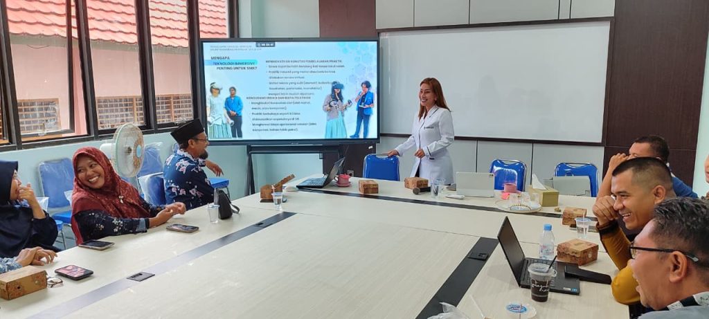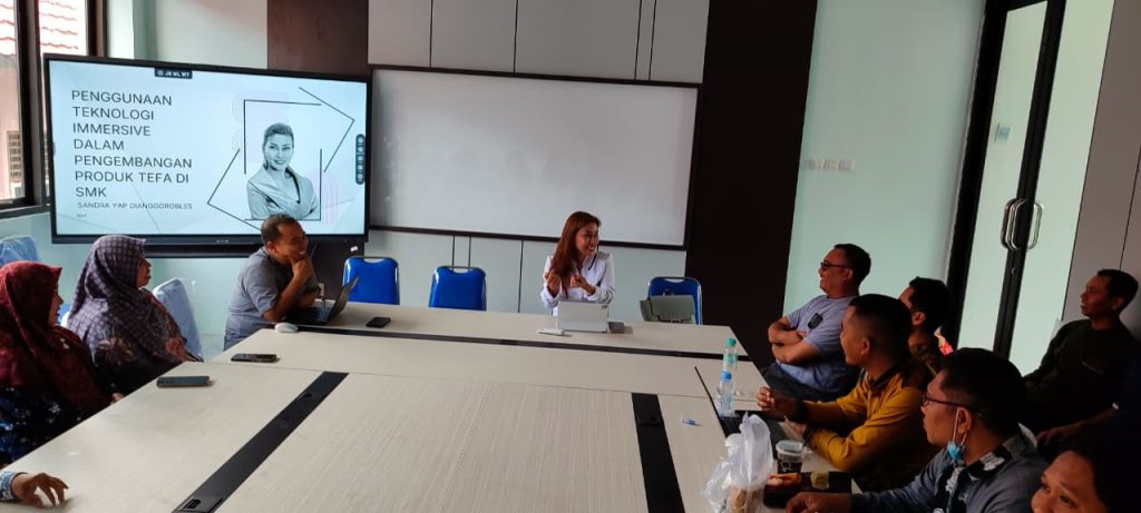 Terkait dengan hal itu siang ini di SMKN 1 Masbagik Bapak/Ibu Guru Produktif mengikuti pendampingan tentang Penggunaan Teknologi Emmersive dalam Pengembangan Produk Tefa bersama Miss Sandra Yap Dianggorobles selaku Direktur Politeknik Sains Seni Rekakreasi (SSR) Bogor bertempat di Ruang Nirmana DKV.